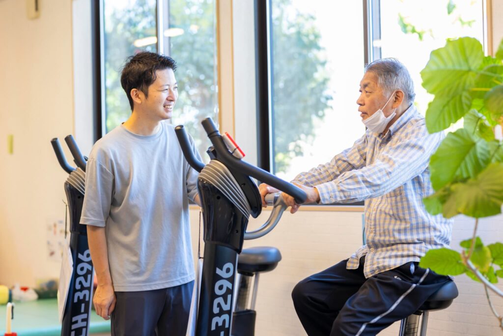 デイサービスや施設において、身体機能が低下したご利用者に身体的・精神的な日常生活の向上をサポートするリハビリテーションを行います。